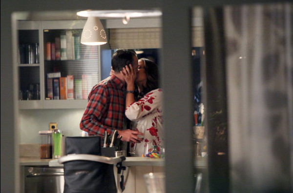 These sets were built on stages at Radford. The main house was based on a house I had lived in in Silver Lake when my son was a new born. We tried to make it aspirational, and casual and full of the colors of sun, sand and sea like LA. The initial concept of the show was that these were not typical parents and they were not really ready for a child. We did a terraced backyard typical of hillside LA and not conducive to children’s birthday parties. The house was somewhat idcentury and somewhat ranch full of sharp corners and loose guitar cords, not baby proofed. We also built a contemporary office set and stages for an Oprah like